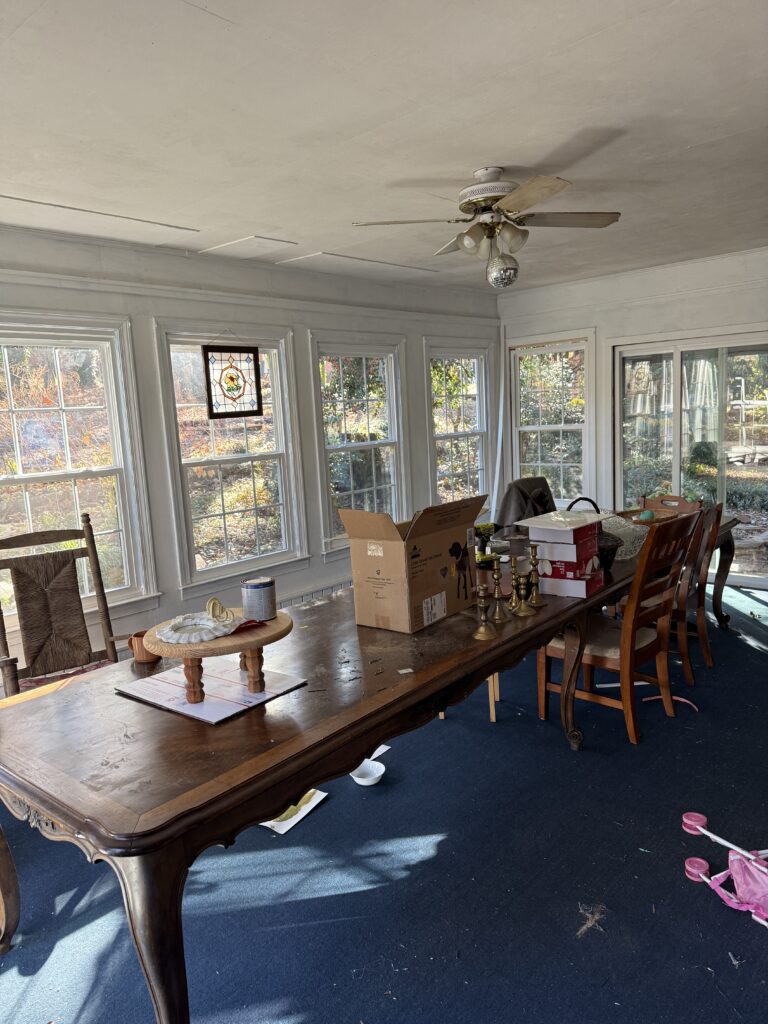 This is the current state of the room where I will be laying a tablescape, lighting 3527 candles, and sitting down to drink a stiff Smokey Harvest Apple Margarita or Vanilla Chai Old Fashioned
